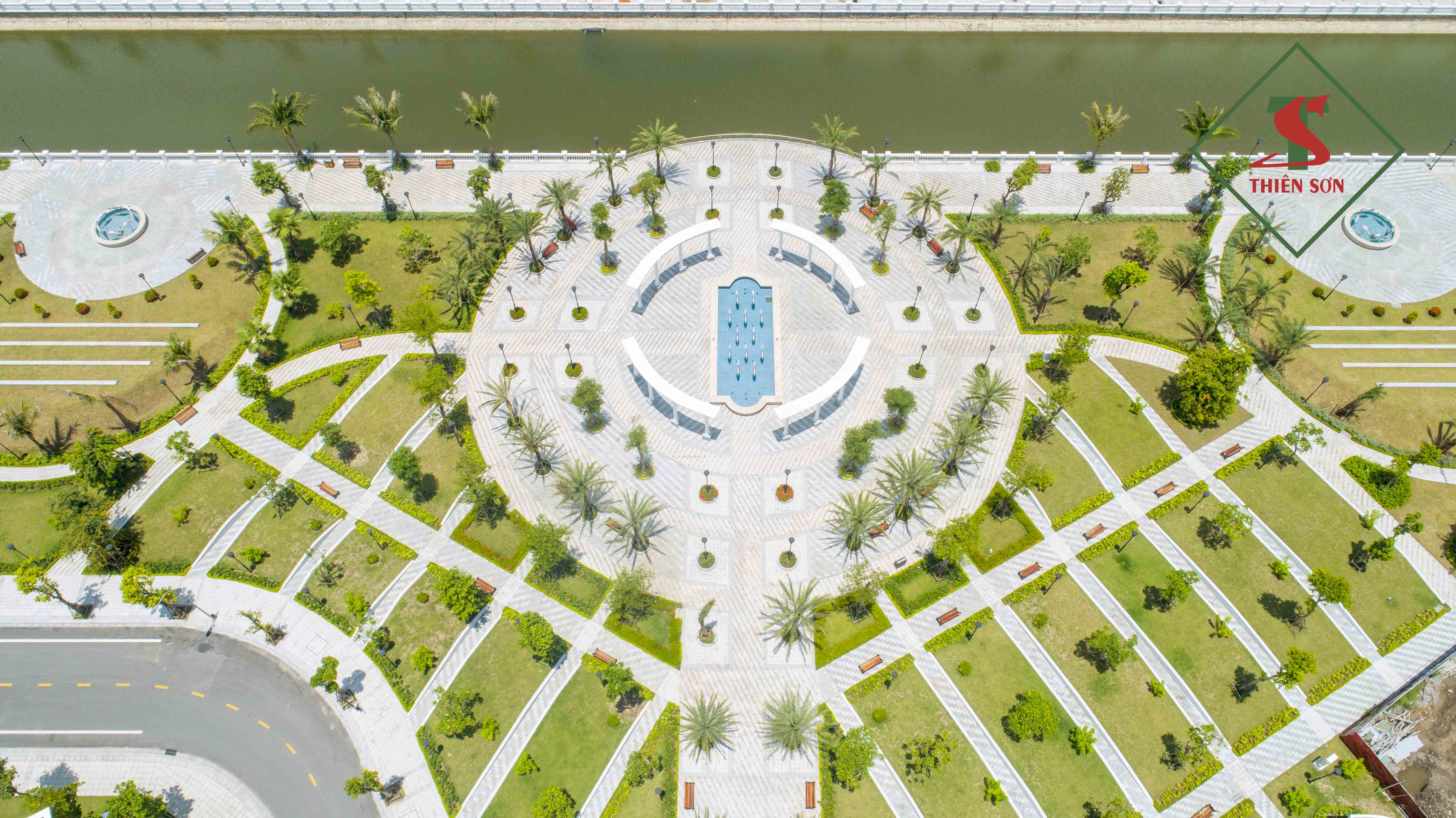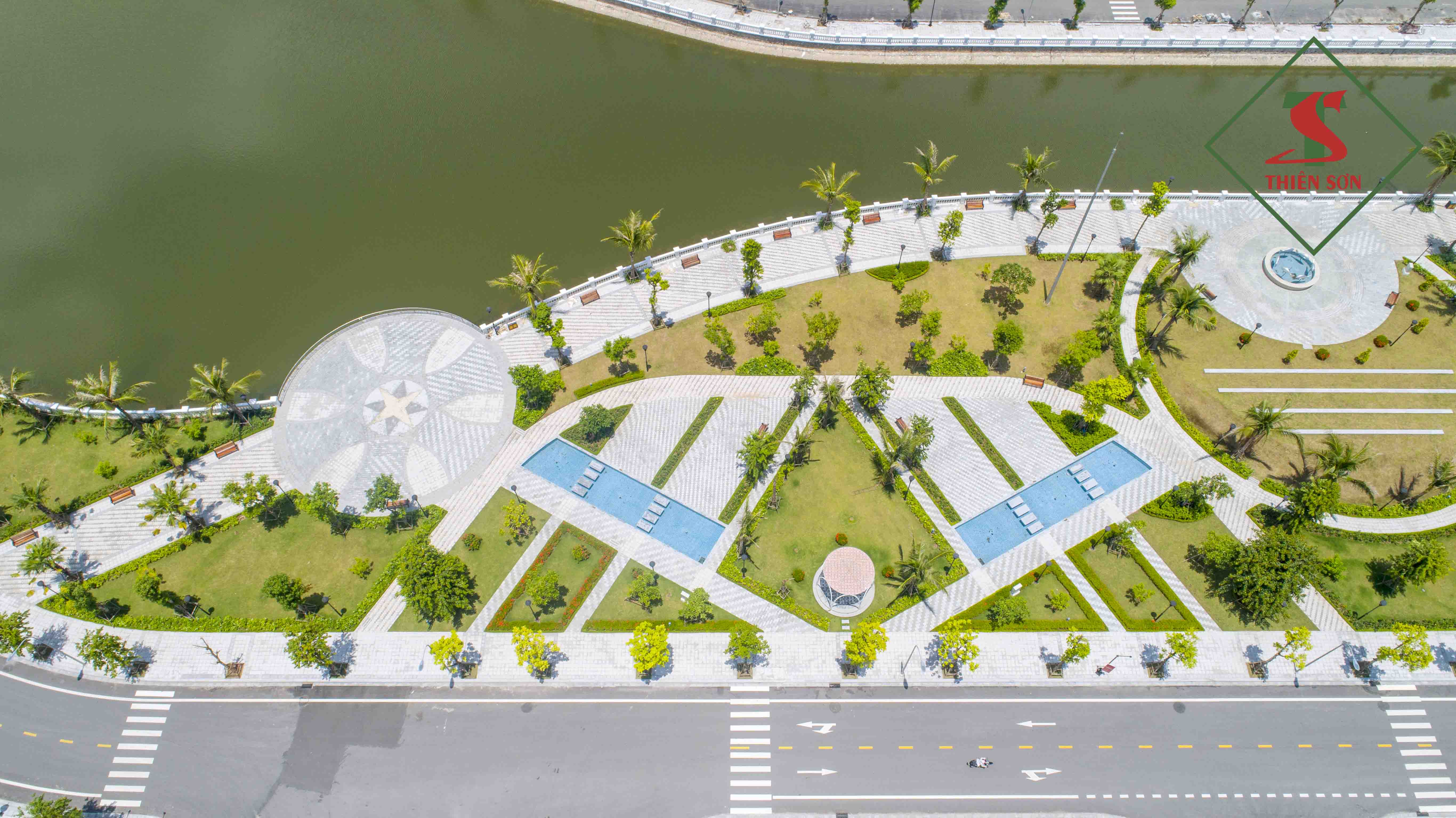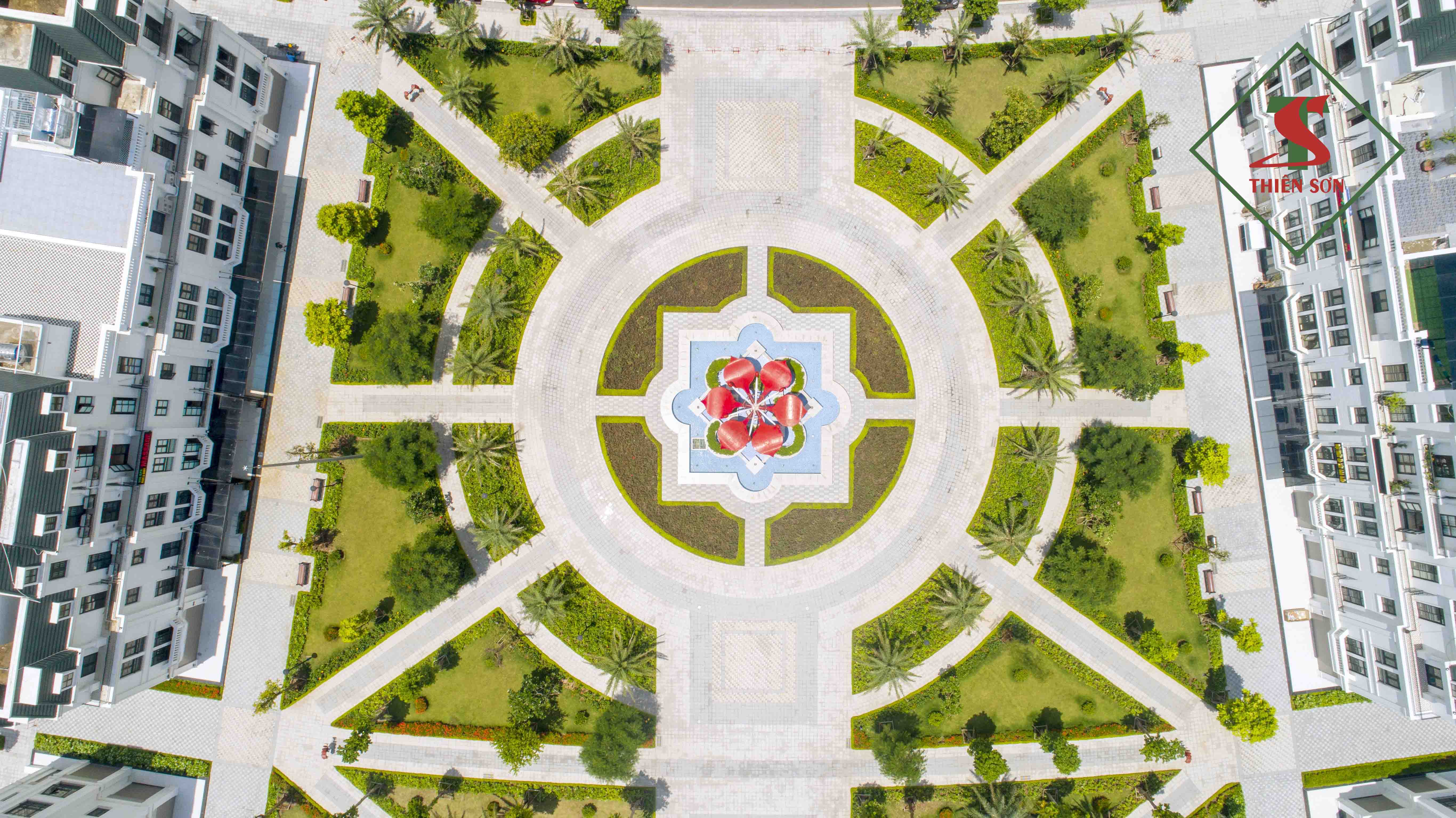 Không gian nhiều cây xanh kết hợp với các sản phẩm đá Granite và Marble cao cấp chất lượng cao do Thiensonstone thi công tạo lên một không gian lý tưởng đáng sống bậc nhất tại đất Cảng.