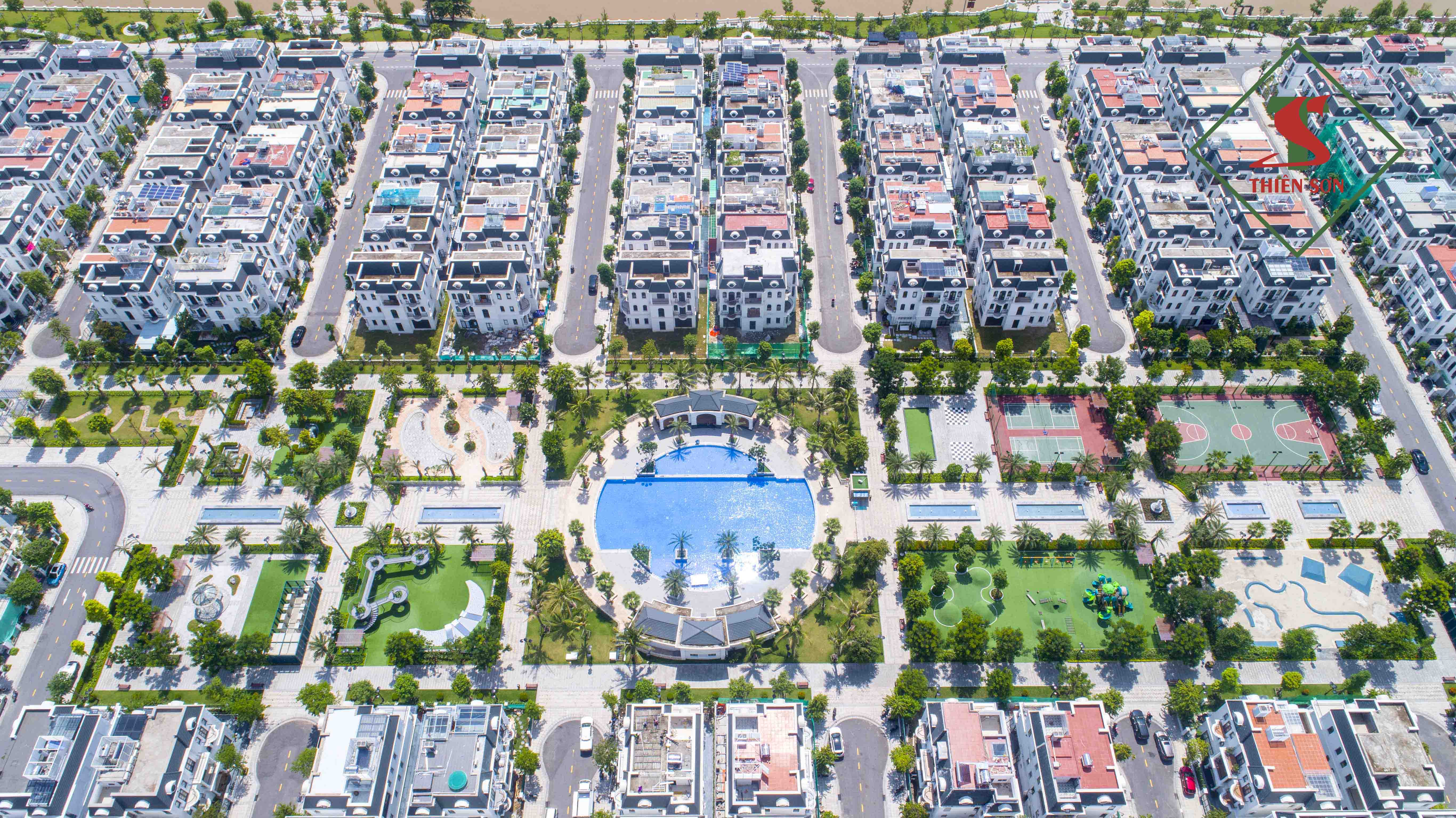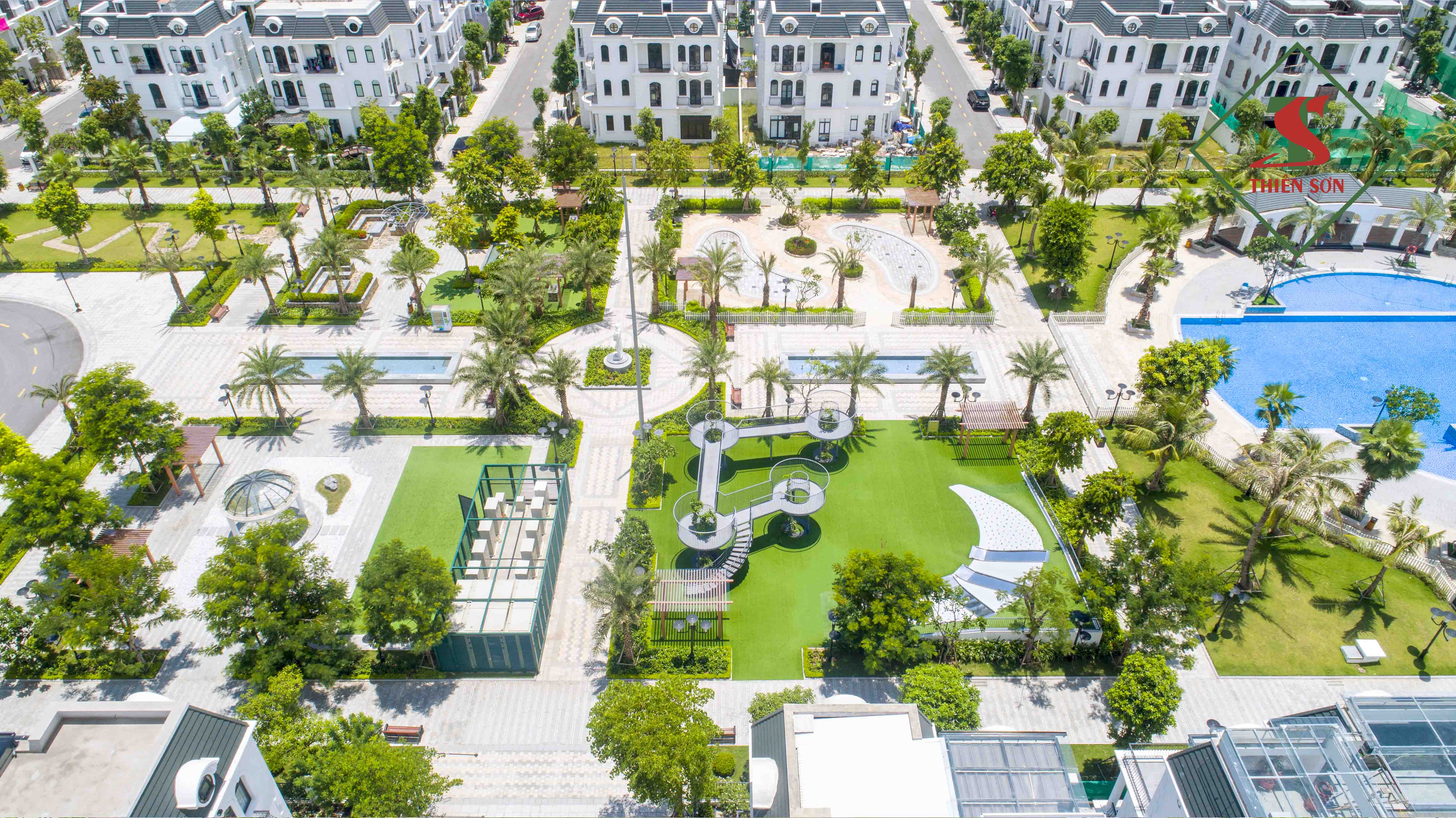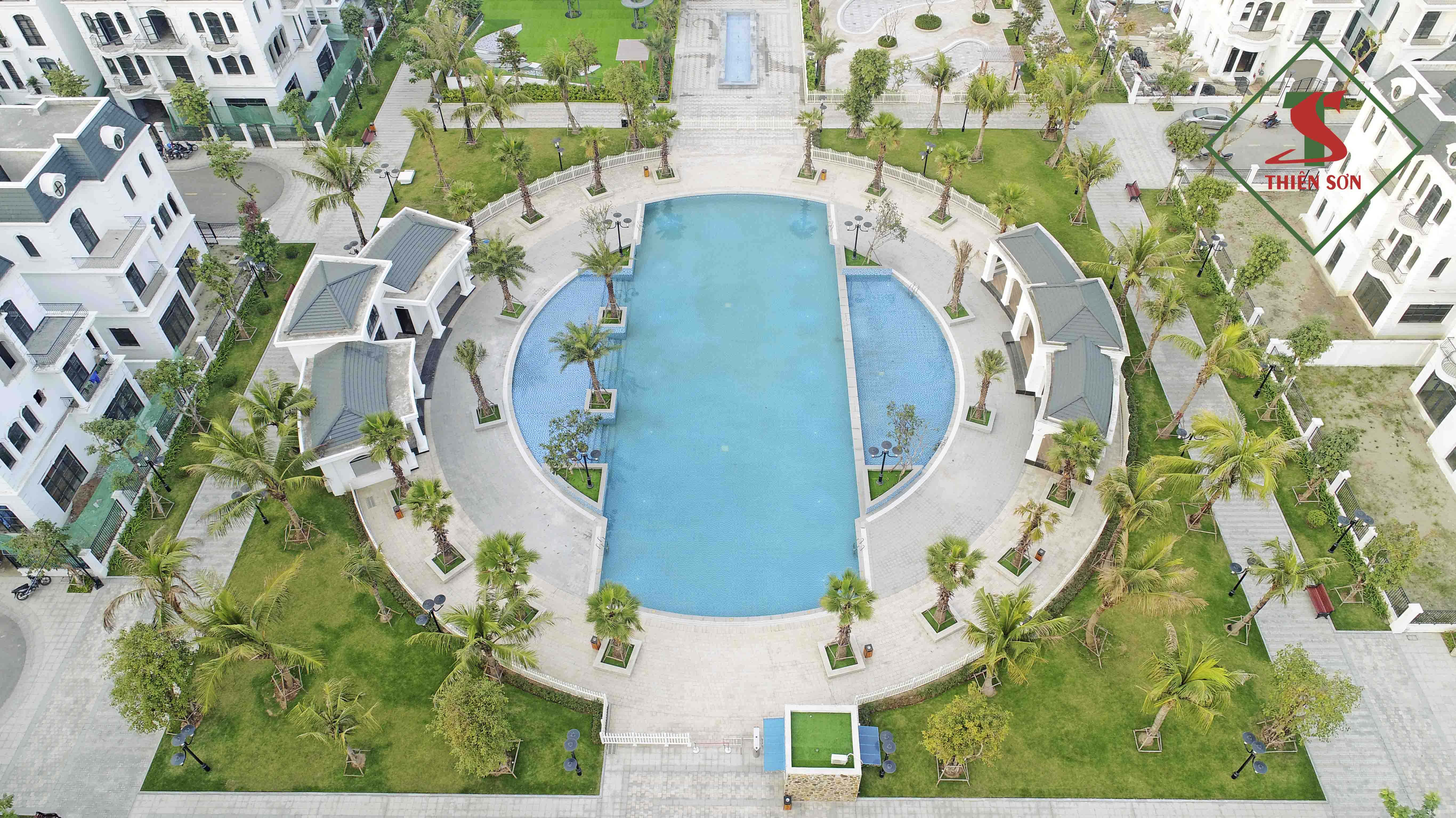 Không gian nhiều cây xanh kết hợp với các sản phẩm đá Granite và Marble cao cấp chất lượng cao do Thiensonstone thi công tạo lên một không gian lý tưởng đáng sống bậc nhất tại đất Cảng.